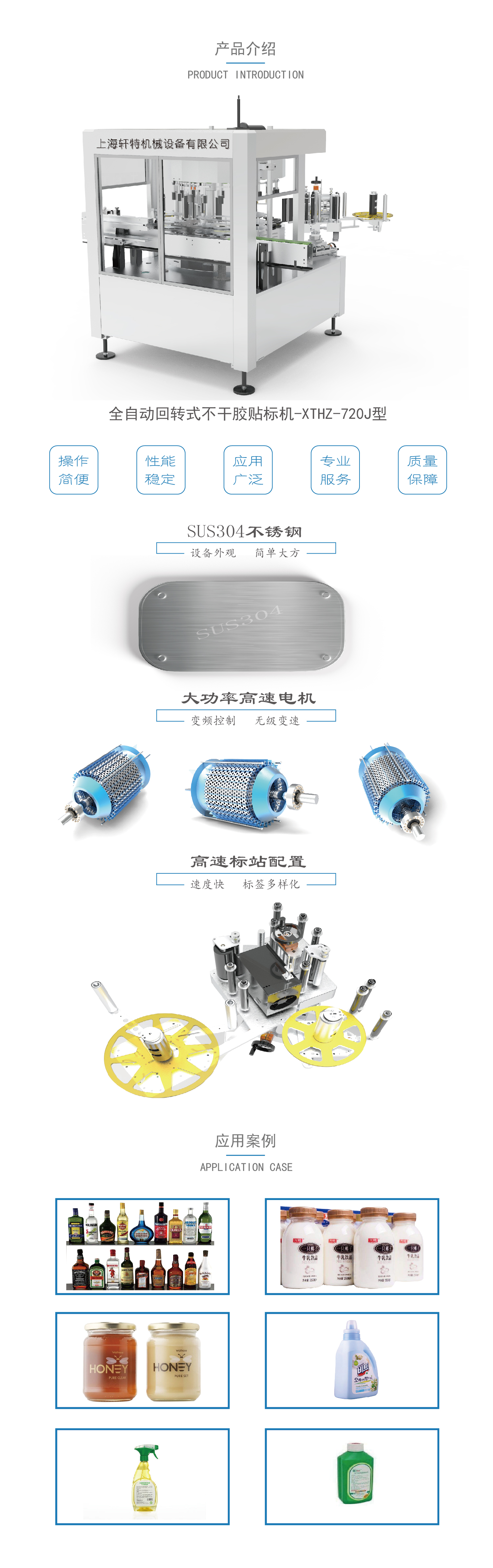 本機型適應于:圓形瓶子多標簽定位高速自動貼標,方瓶一周高速自動貼標,以及其他復雜瓶型高精度的自動貼標要求